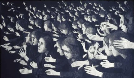 These include Evie’s 1976 charcoal drawing The Crowd (below), as well as works by internationally recognised figures such as Paula Rego, Lucian Freud, L.S. Lowry, Lubaina Himid and Gillian Wearing, and many others.